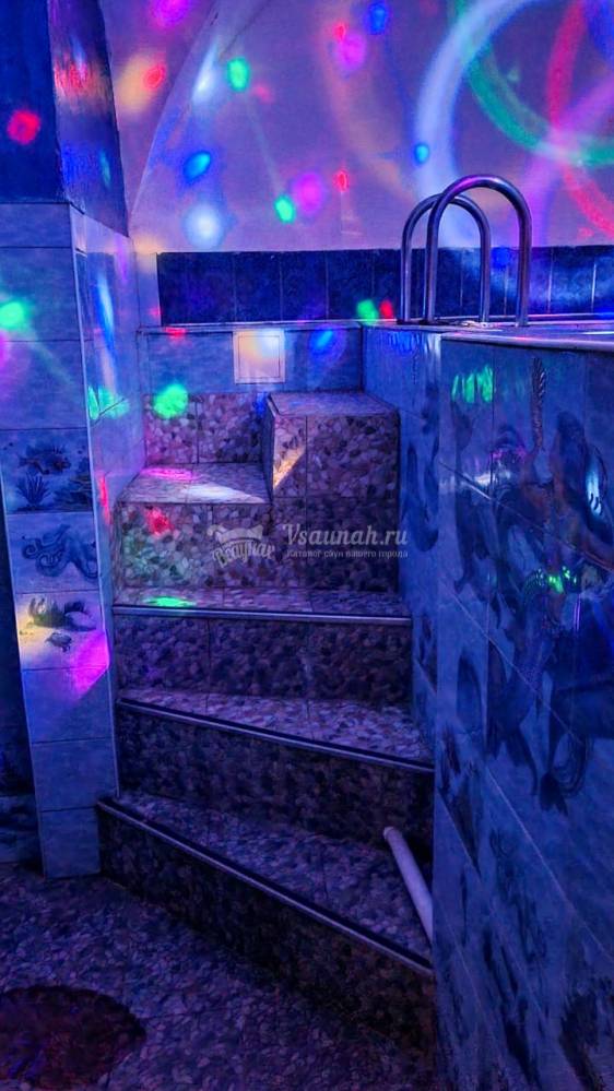 Здесь вы сможете не только попариться и помыться, но и посидеть в компании друзей, устроить вечеринку или просто провести время с семьей. После парения мы приглашаем вас окунуться в прохладный или подогретый бассейн. Полы перед бассейном и в душевой сделаны из камня в виде морской гальки, которая предотвращает скольжение, а специальные коврики оказывают массажный эффект и придают поверхности еще большую устойчивость. Также в сауне имеется обливная кадушка.