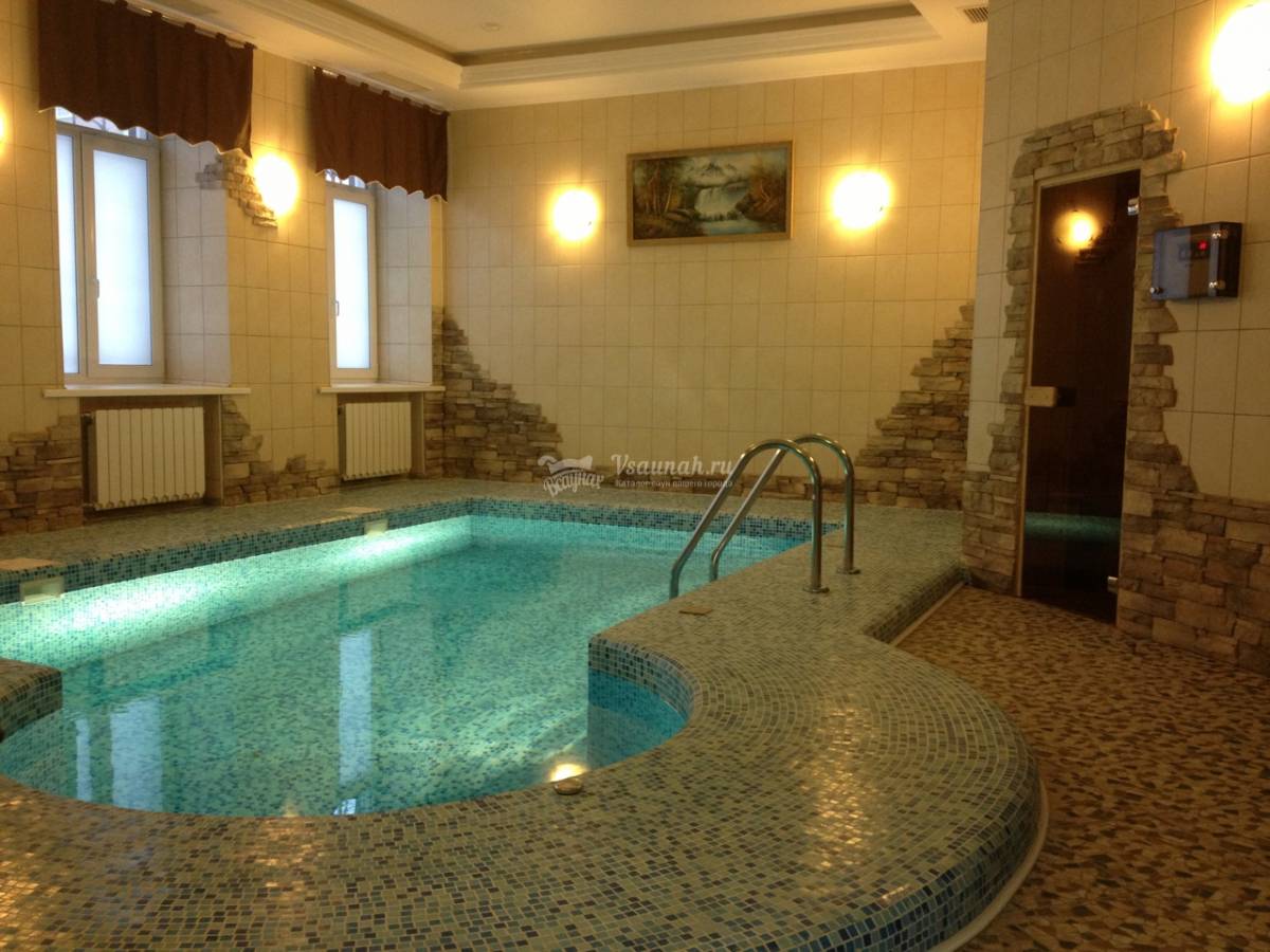 Бассйен с гидромассажем, джакузи, душ, подсветка, веники.